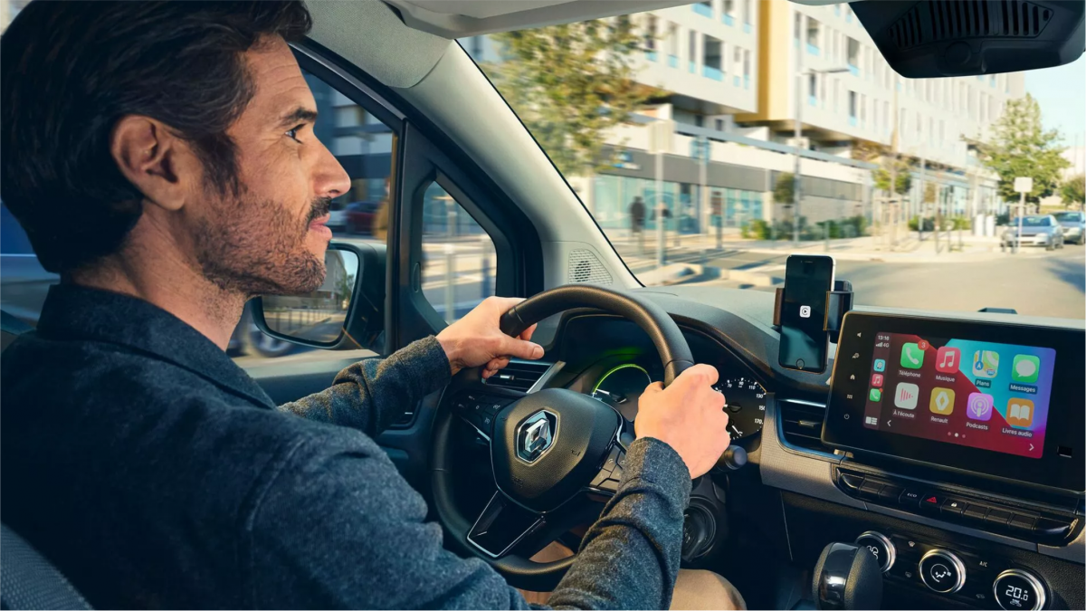 Mais que um veículo, é um verdadeiro escritório móvel. Com suporte de celular modular e tomada USB, você pode manter seus dispositivos carregados e acessíveis durante seu período de trabalho. Além disso, o multimídia de 8” com espelhamento de smartphone proporciona uma incrível experiência de conectividade. Descubra o poder da mobilidade elétrica com o Kangoo E-Tech 100% elétrico.